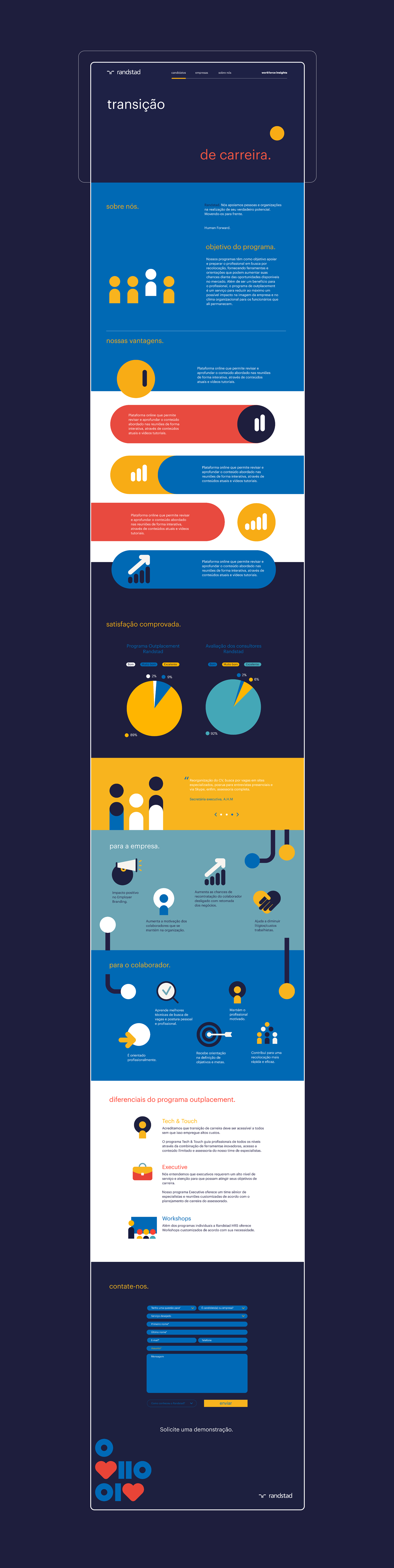 A Randstad foi fundada na Holanda no ano de 1960, voltada para o mercado de Recursos Humanos e atuando no Brasil desde 2008, é uma das líderes globais neste setor. Através desta parceria foi possível explorar novos caminhos visuais e de interação digital para a empresa, imergindo em seu DNA e apresentando soluções que visaram expandir todas as possibilidades apresentadas pelas diretrizes internacionais da marca.