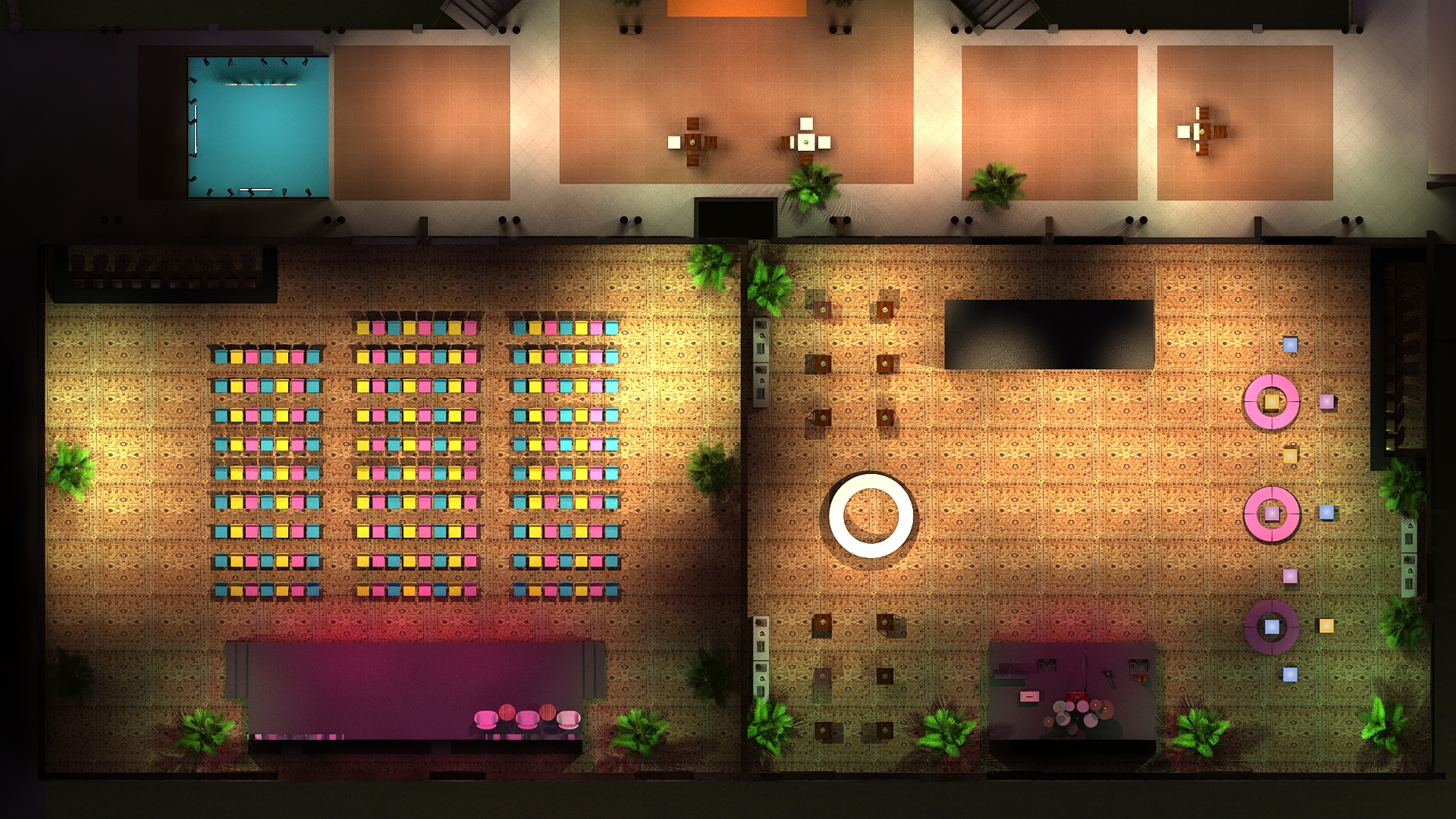 O design cênico foi estruturado a partir de croquis e pré-projetos que orientaram o time 3D com clareza técnica e visual. O acompanhamento criativo assegurou unidade estética, viabilidade de produção e impacto na experiência final.