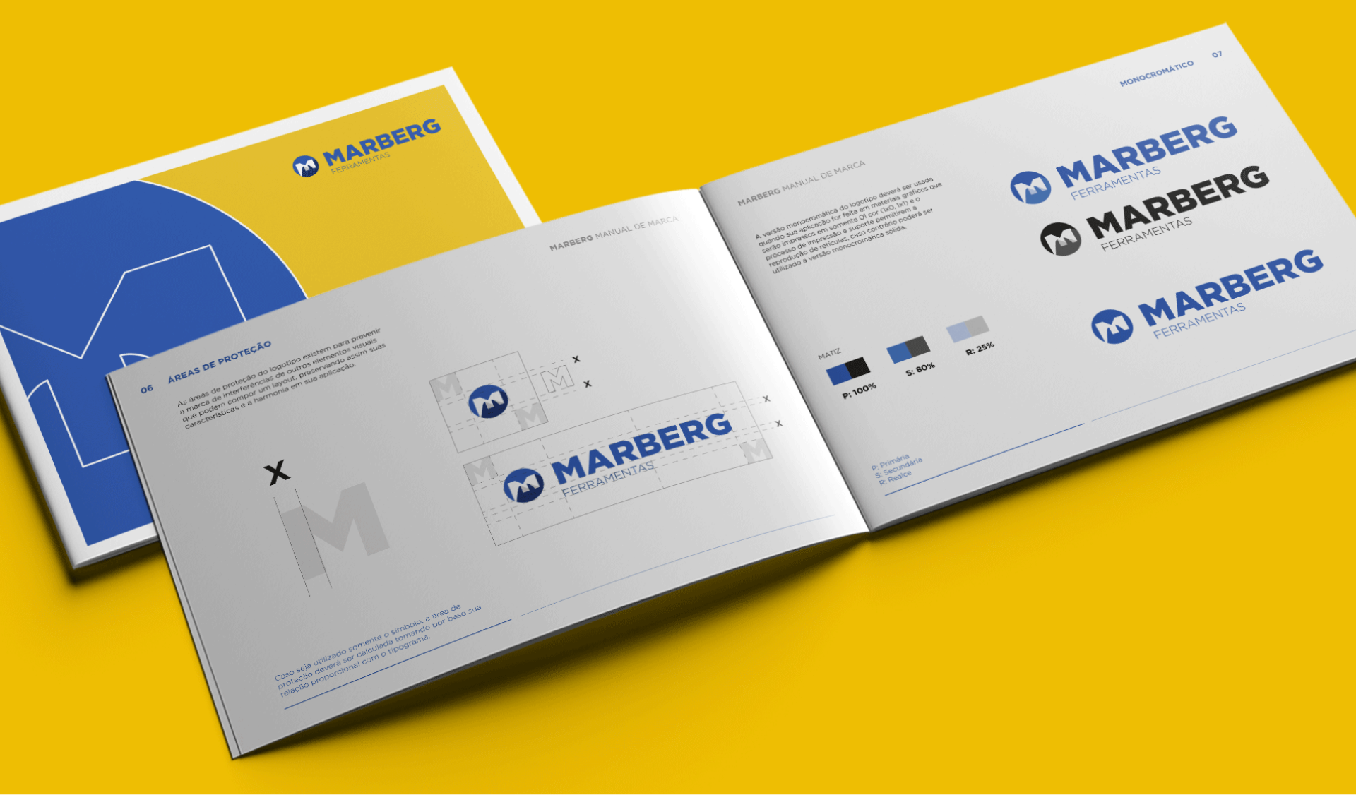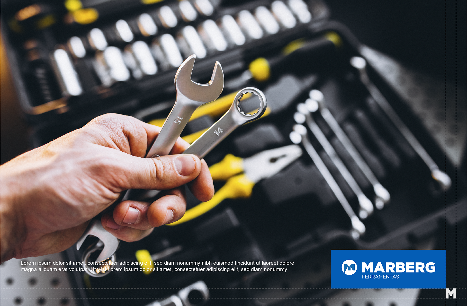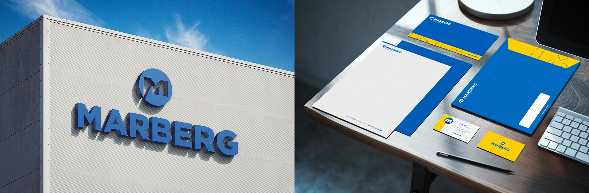 O símbolo integra a letra “M” a partir da forma de um paquímetro, reforçando os conceitos de precisão, estabilidade e confiabilidade da nova marca. Traduzindo em uma linguagem direta e robusta e conectando a herança do setor ao novo posicionamento visual da Marberg.
